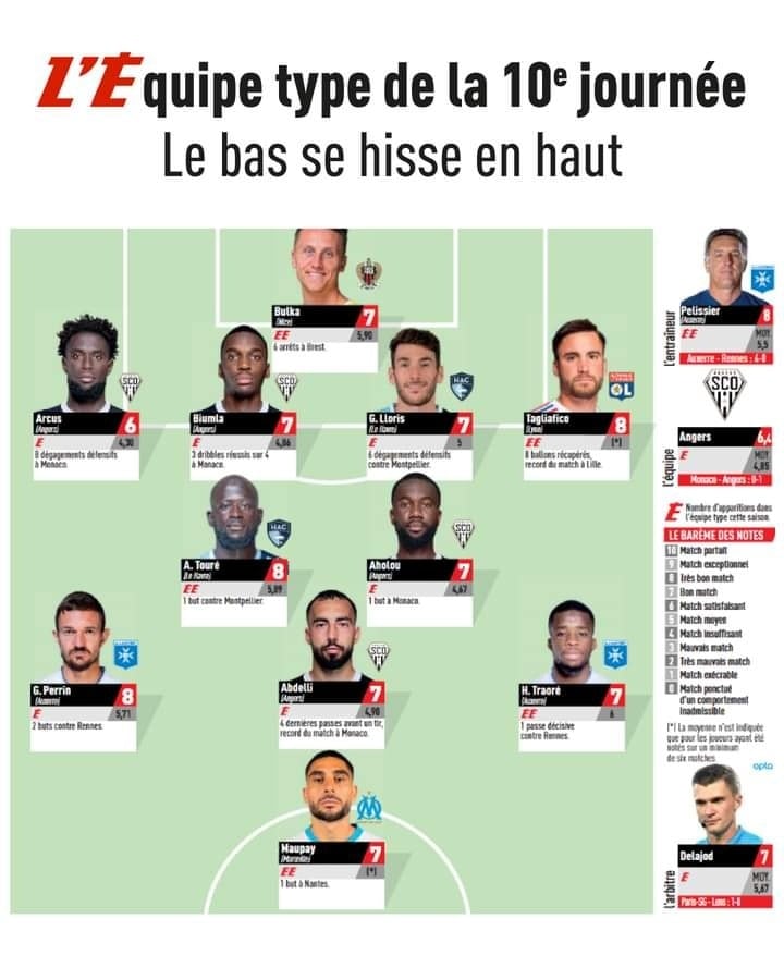 وكشفت صحيفة “ليكيب” الفرنسية، عن تشكيلتها الخاصة بالجولة الـ 10 من الدوري الفرنسي، التي اختتمت أمس الأحد. وعرفت التشكيلة المثالية تواجد، عبدلي، بتقييم 7/10.