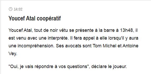 أكد الدولي الجزائري، ولاعب نيس الفرنسي، يوسف عطال، جاهزيته للرد على أسئلة قاضي محكمة نيس.