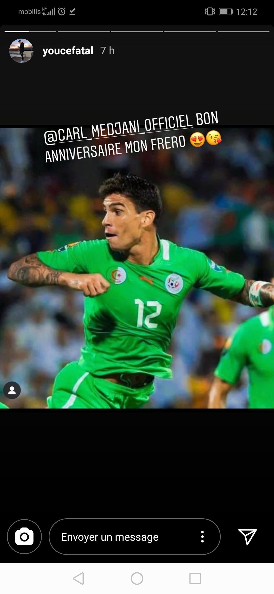 إبن ولاية تيزي وزو نشر صورة لمجاني بقميص الخضر على “ستوري” صفحته الشخصية في موقع التواصل الاجتماعي “أنستغرام”.