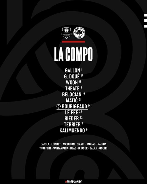 ووضع مدرب رين مهاجمه المتألق أمين غويري في التشكيلة الإحتياطية رغم أنه سيلعب بطريقة هجومية ذلك خلال مواجهة باناثينايكوس اليوناني بملعب “روازون بارك”.
