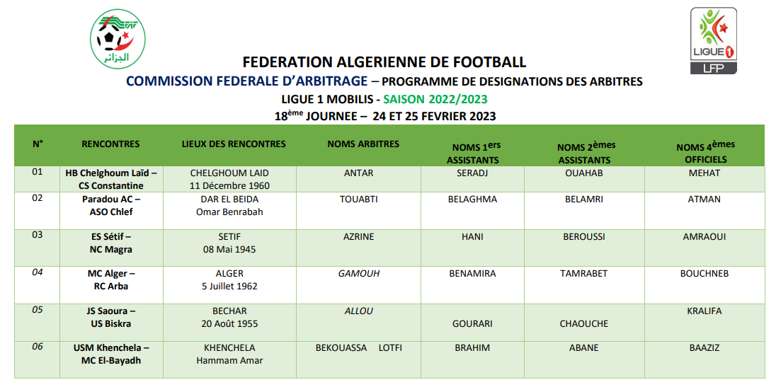 عينت لجنة التحكيم، الحكم قاموح، لادارة مباراة الجولة الـ18 من البطولة المحترفة، والتي ستجمع مولودية الجزائر، بأمل الأربعاء.