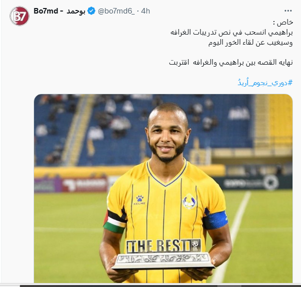 كما أورد حساب “بوحمد” المعروف بمصداقيته في نقل أخبار الكرة القطرية، عبر الصفحة الرسمية على منصة “إكس” اليوم الجمعة أن براهيمي انسحب من تدريبات ناديه الغرافة، حينما عنون “نهاية القصة بين براهيمي والغرافة.. اقتربت”.