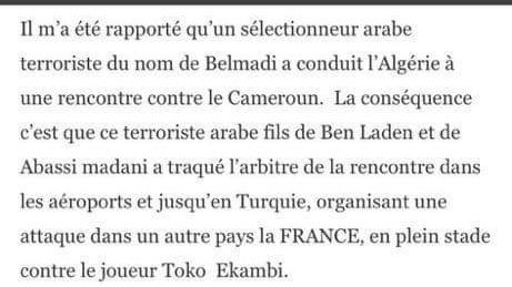 كارثة.. موقع كاميروني يصف بلماضي بالإرهابي !