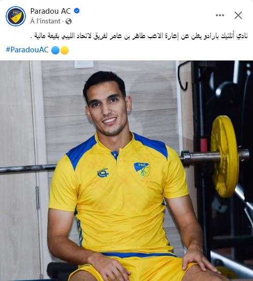 أعلنت إدارة نادي أتليتيك بارادو، اليوم الثلاثاء، عن التحاق لاعبها طاهر بن عامر، بنادي الاتحاد الليبي.