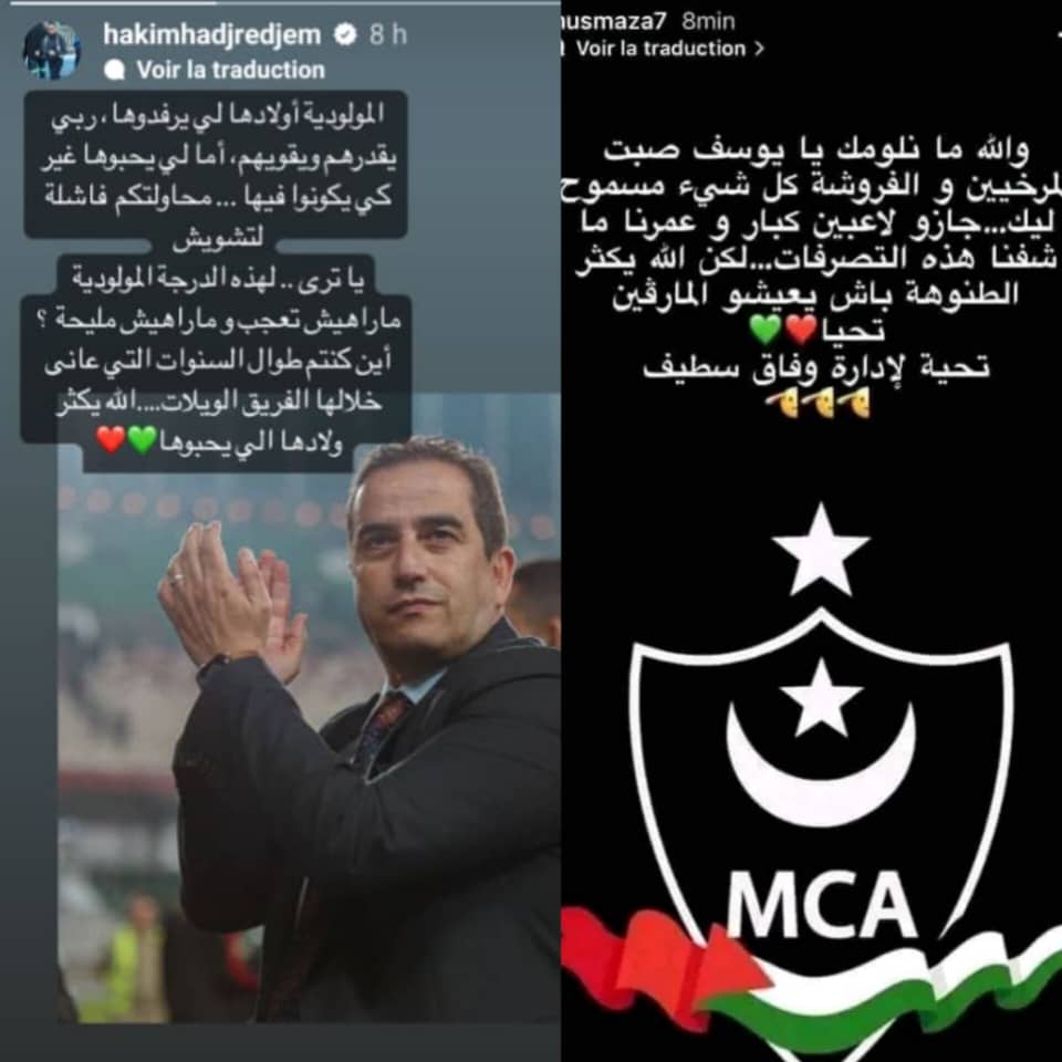 ليضيف رئيس العميد: “يا ترى.. لهذه الدرجة المولودية ما راهیش تعجب وماراهيش مليحة؟ أين كنتم طوال السنوات التي عانى خلالها الفريق الويلات.. الله يكثر ولادها الي يحبوها”.