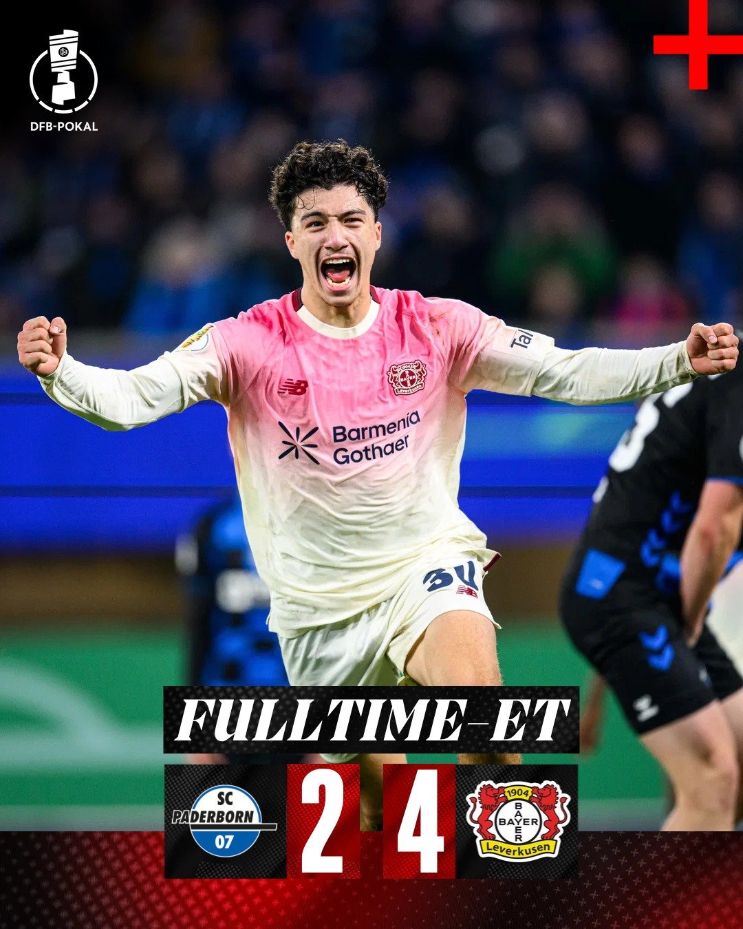 وسجل مازة هدفين متتاليين في الدقيقتين الثانية والرابعة بعد نهاية الوقت الإضافي. ليقود ليفركوزن إلى فوز مثير وتأهل مستحق إلى الدور القادم من المنافسة.