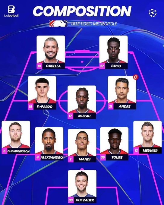 تواجد الدولي الجزائري عيسى ماندي في التشكيلة الأساسية لفريقه ليل الفرنسي التي تواجه نادي أتلتيكو مدريد. بملعب “ميترو بوليتانو”.