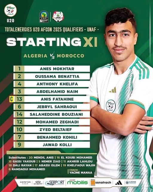 أعلن مدرب المنتخب الوطني لأقل من 20 سنة ياسين مانع عن التشكيلة الأساسية التي سيعتمد عليها خلال مواجهة المغرب برسم بطولة شمال إفريقيا.