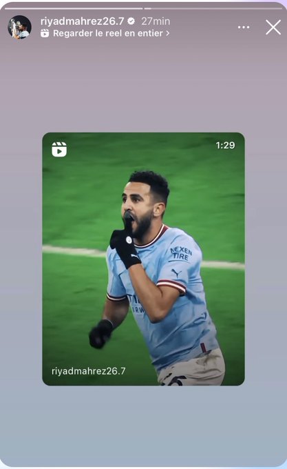 و يبدو أن رياض محرز تذمر كثيرا، من إبعاده من القائمة وهو المتوج بالثلاثية التاريخية رفقة “السيتيزنس” قبل تنقله إلى الأهلي السعودي.