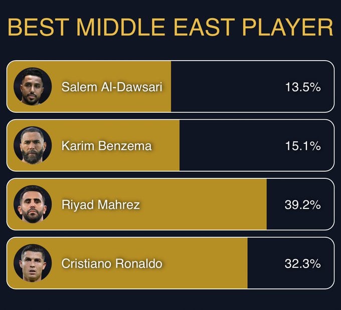 محرز ينافس بن زيمة ورونالدو على جائزة أفضل لاعب في الشرق الأوسط