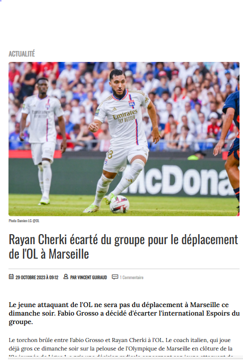أبعد مدرب ليون الفرنسي فابيو غروسو مهاجمه في الفريق الفرانكو جزائري ريان شرقي عن مباراة أولمبيك مارسيليا بسبب إتهامه له بـ “الخيانة” و “الجوسسة”.