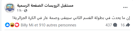كما كشفت أن ما يحدث في بطولة القسم الثاني “سيبقى وصمة عار عل تاريخ الكرة الجزائرية”.