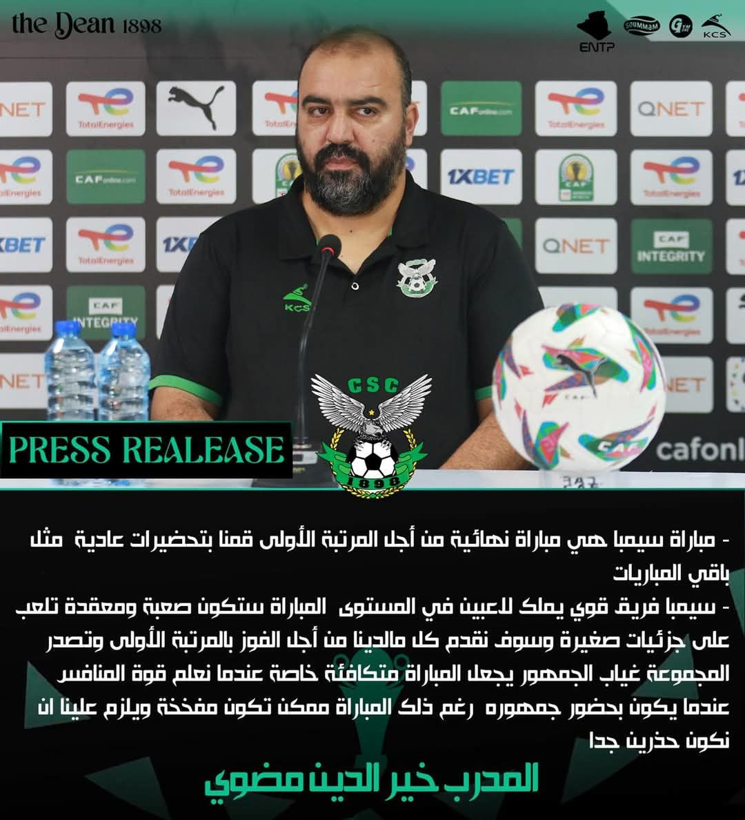 كما أبرز مدرب الشباب القسنطيني، بأن المنافس فريق قوي يملك لاعبين في المستوى. مضيفا: “المباراة ستكون صعبة ومعقدة.. ستلعب على جزئيات صغيرة وسوف نقدم كل مالدينا من أجل الفوز وتصدر المجموعة”.