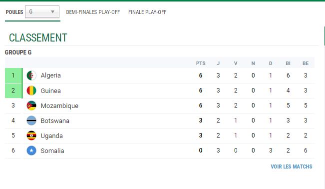ليرتفع بذلك، رصيد موزمبيق، إلى 6 نقاط مناصفة مع المنتخب الوطني ونظيره الغيني. فيما يقبع الصومال في المركز الأخير، من دون نقاط، بعد 3 انهزامات.