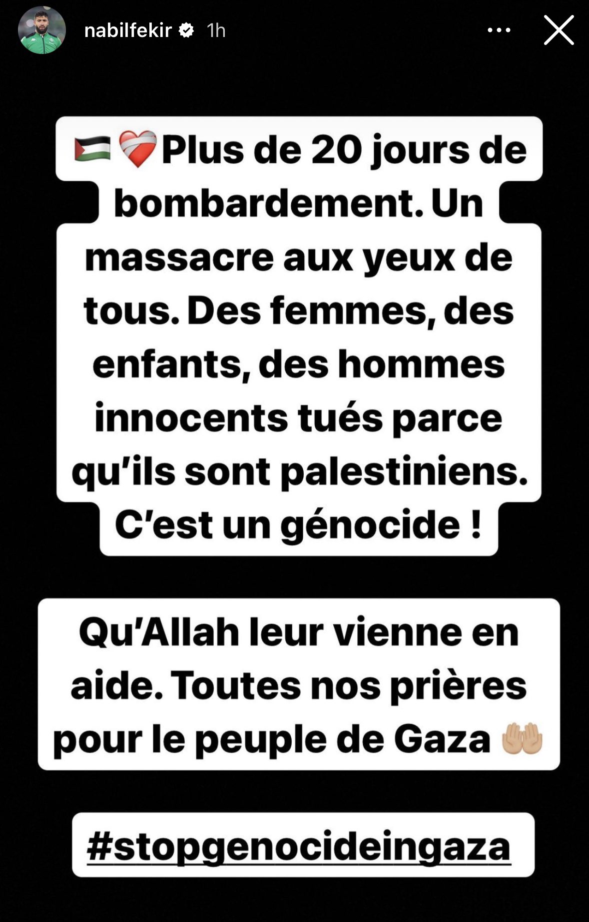 عبر النجم الفرنسي، ذو الأصول الجزائرية، نبيل فقير، عن تضامنه الكبير مع الشعب الفلسطيني، مبديا سخطه على الظلم والعدوان الذي يتعرضون له.