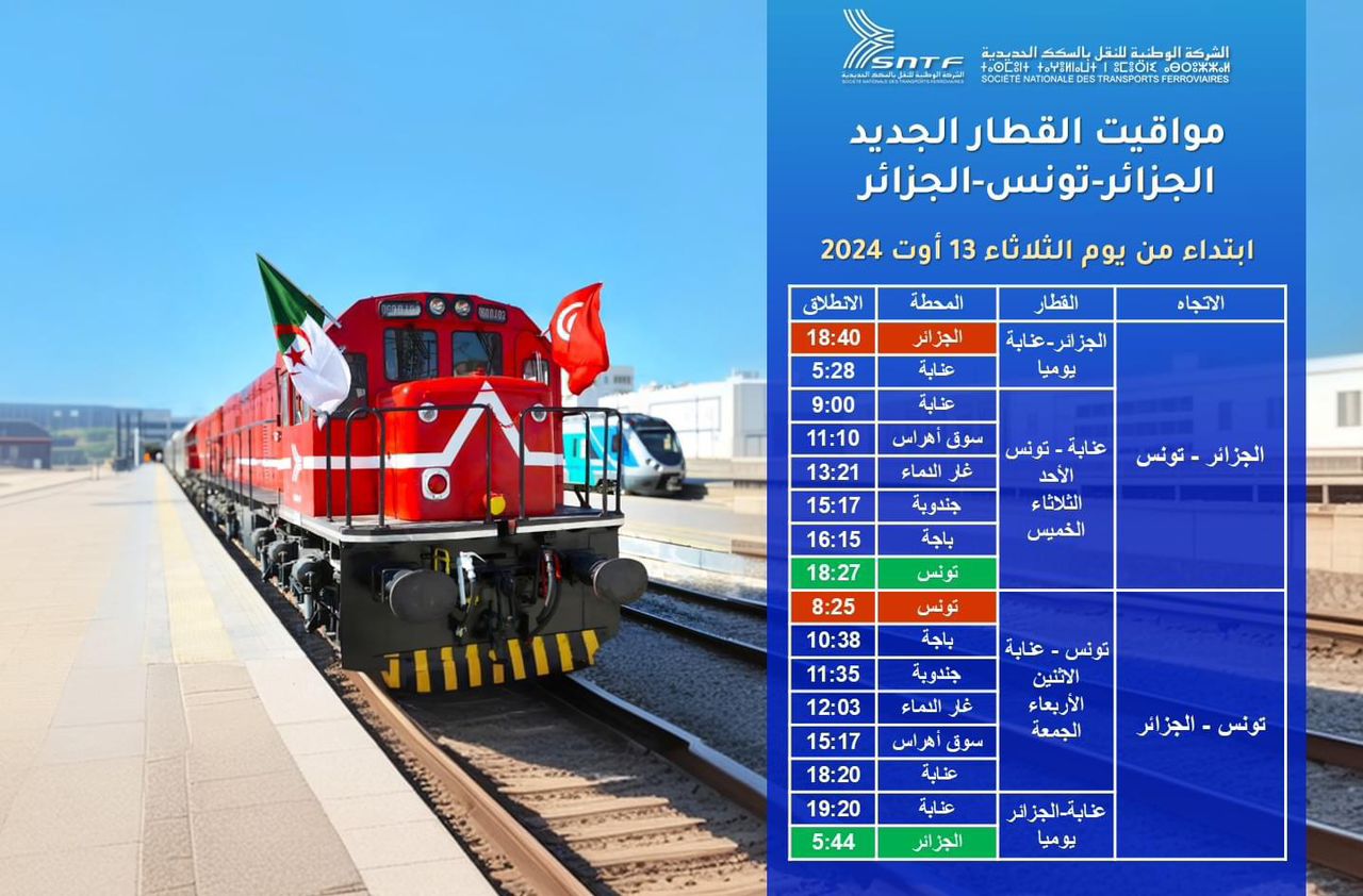‎سيكون الإنطلاق الفعلي للقطار على الخط الرابط بين الجزائر وتونس يوم الثلاثاء 13 أوت 2024.