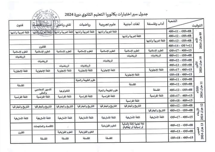 هذا هو جدول توقيت امتحان شهادة البكالوريا دورة 2024