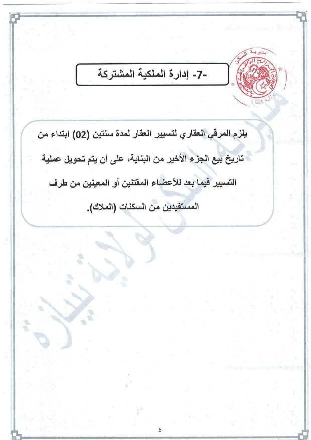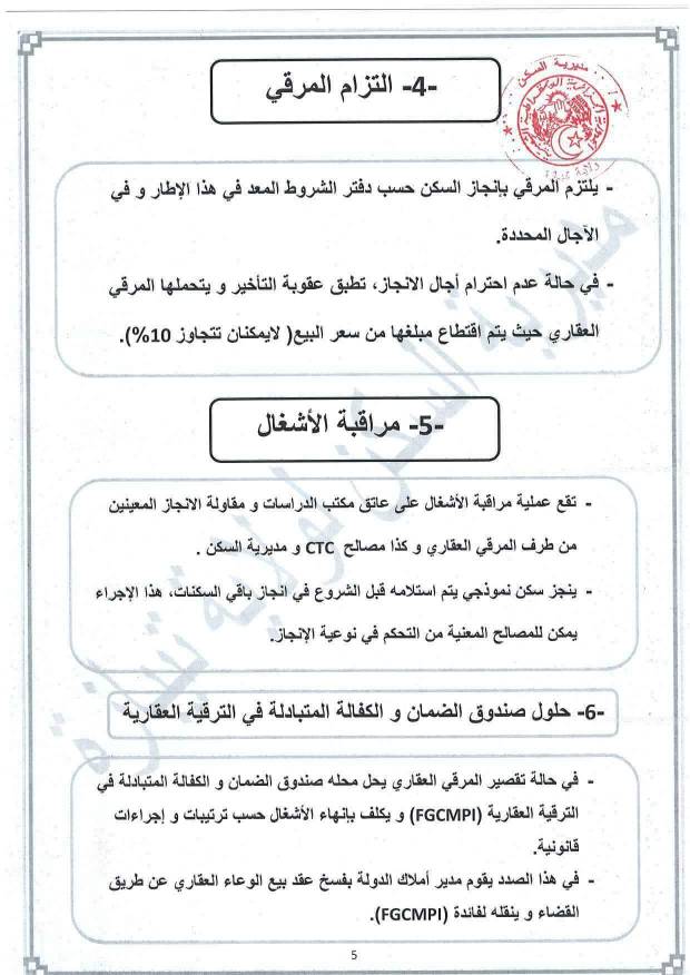 مع تحويل المشروع لصندوق الضمان والكفالة المتبادلة في الترقية العقارية ويكلف بإنهاء الأشغال وفسخ العقد مع المرقي في حال تقصيره.