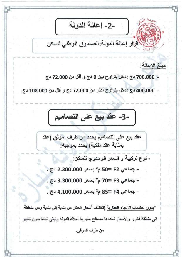 وذلك قصد الحصول على الإعانة الخاصة بالسكن والمحددة بـ 70 مليون لمن يتراوح دخله بين 0 و72 ألف دينار،