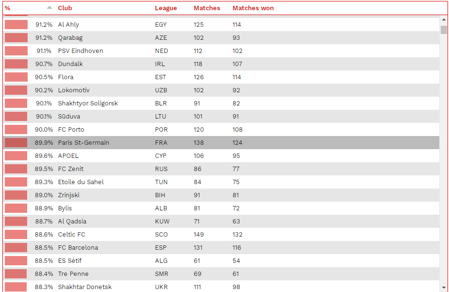 وأكد المركز السويسري أن فريق وفاق سطيف يحتل المركز الأول في الجزائر والـ 31 عالميا في نسبة الإنتصارات بعد تسجيل الهدف الأول، بعدما حقق 54 إنتصار من أًصل 61 مباراة سجل فيها أولا.