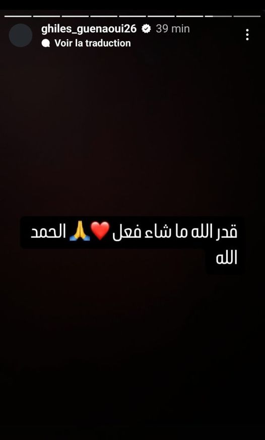 وقال غيلاس ڨناوي عبر خاصية “ستوري” على إنستغرام: “قدر الله ما شاء الله فعل، الحمد لله”.