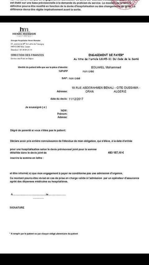 حيث أن القلب أبي أنس، جد متعب ويشتغل بنسبة 80 % حسب تقارير الأطباء، ويتطلب عملية إستعجالية بباريس.