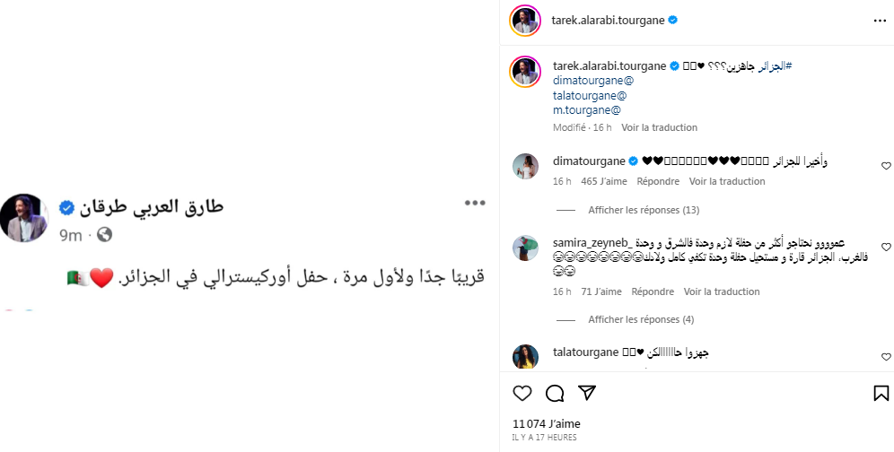 وكتب الفنان على صفحته الرسمية على موقع انستغرام: “قريبا جدا ولأول مرة، حفل أوركيسترالي في الجزائر”.