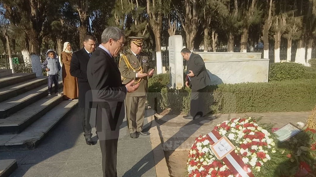 ترحم، اليوم السبت، سفير تونس بالجزائر، حجي شفيق، على روح الفقيد الفريق احمد قايد صالح بمقبرة العالية في العاصمة.