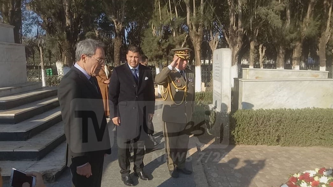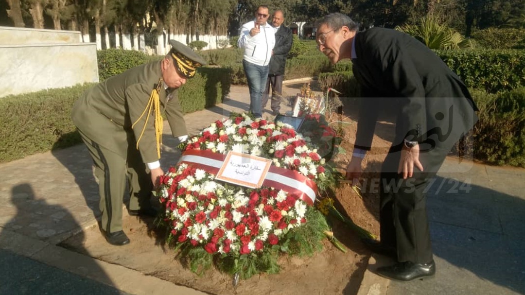 ترحم، اليوم السبت، سفير تونس بالجزائر، حجي شفيق، على روح الفقيد الفريق احمد قايد صالح بمقبرة العالية في العاصمة.