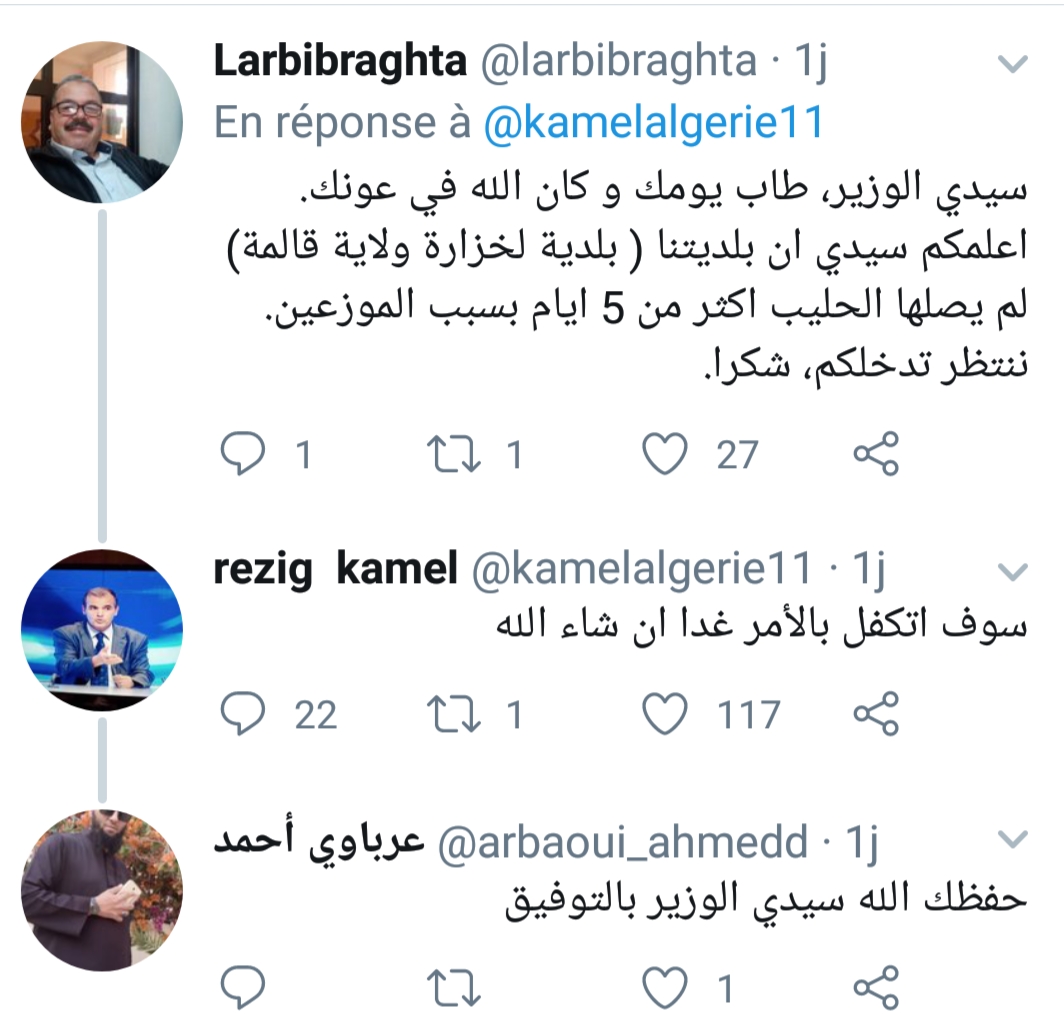وكتب رزيق في رد له على سؤال أحد المواطنين بولاية قالمة حول القضية، “سوف أتكفل بالأمر غدا إن شاء الله”.