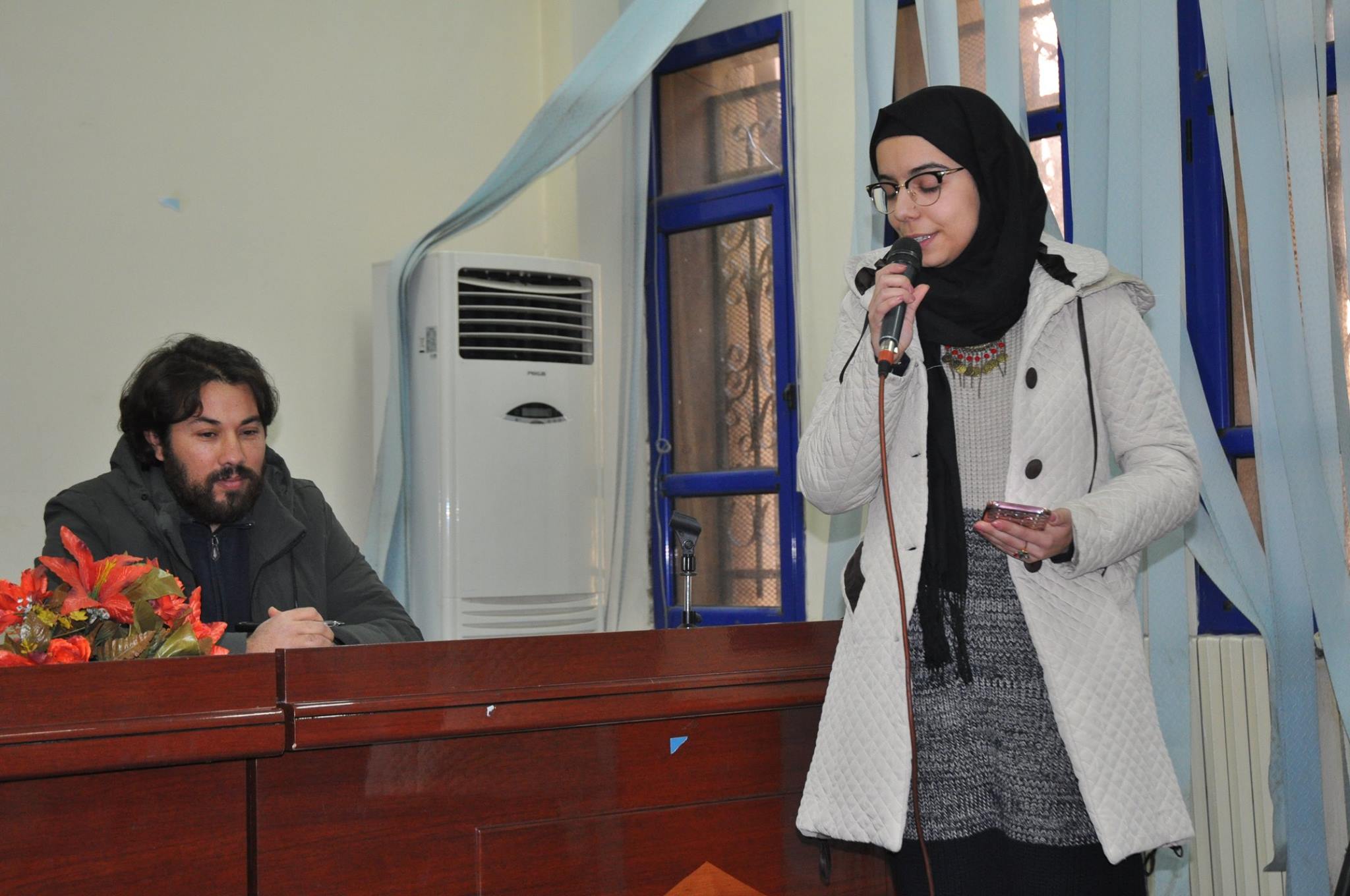 في ديوان للشعر الحر يتكون من حوالي 70 صفحة تضم 50 قصيدة، قدمت عددا منها للجمهور الحاضر.