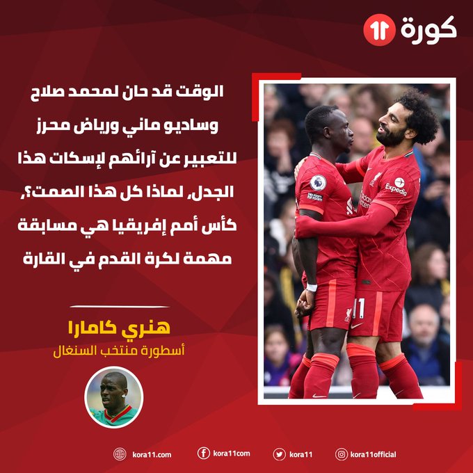 وقال هنري كامارا في تصريحات صحفية:”الوقت قد حان لمحمد صلاح وساديو ماني ورياض محرز للتعبير عن أرائهم لإسكات هذا الجدل، لماذا كل هذا الصمت؟”.