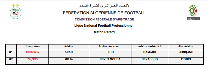 عينت لجننة التحكيم، الحكم أعراب، لإدارة المباراة المتأخرة التي ستجمع شباب بلوزداد، بالضيف أمل الأربعاء.