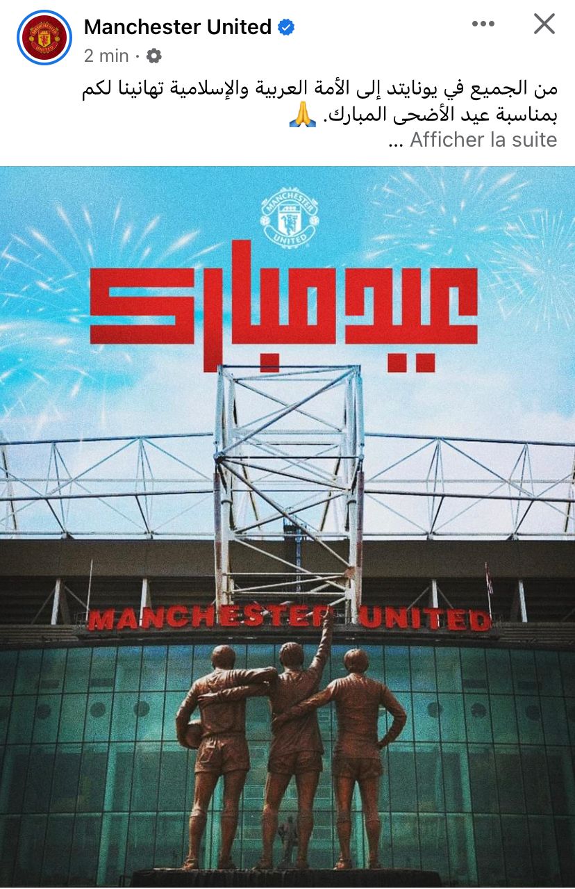 كما زيّنت مختلف الأندية صفحاتها عبر وسائل التواصل الاجتماعي بجملة “عيد أضحى مبارك” وباللغة العربية.