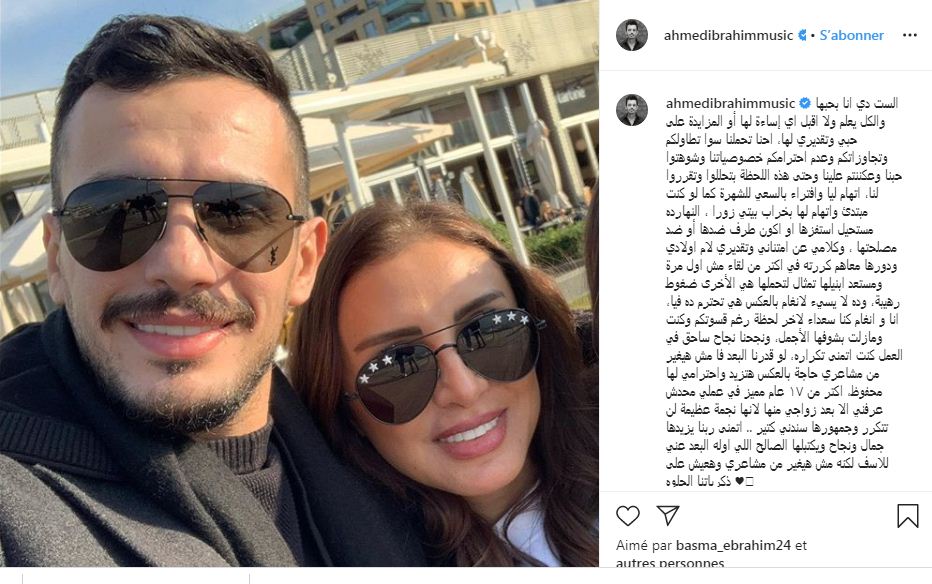 لمح الموزع الموسيقي، أحمد إبراهيم، اليوم الإثنين، إلى انفصاله عن زوجته النجمة أنغام.