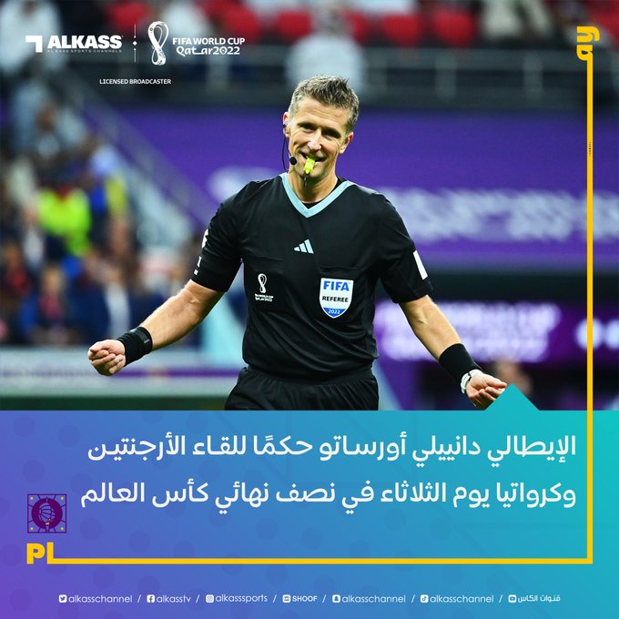 اختير الحكم الإيطالي دانييلي أورساتو لإدارة مباراة الأرجنتين و منتخب كرواتيا في نصف نهائي مونديال قطر .