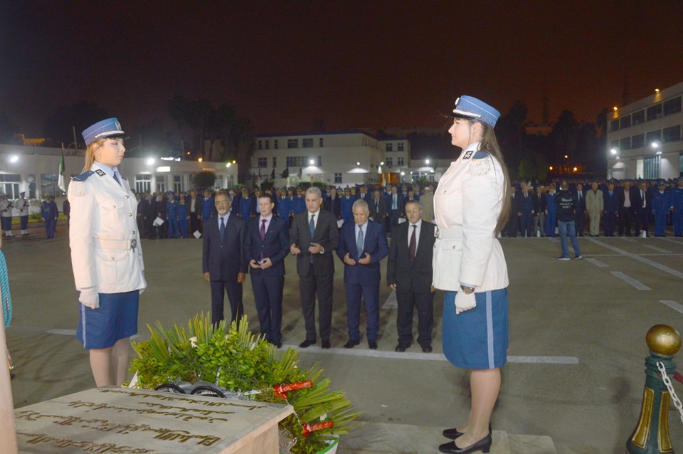 وبالمناسبة، وعلى الساعة “00:00″ من ليلة الفاتح من نوفمبر 2019 قام المدير العام للأمن الوطني رفقة الأمين العام لوزارة الداخلية والمدير العام للحماية المدنية، بوضع إكليل من الورود على النصب التذكاري وتمت قراءة الفاتحة على أرواح الشهداء الأبرار، ثم رفع العلم الوطني تحت النشيد الوطني من أداء طلبة المدرسة العليا للشرطة ”علي تونسي” وموظفي الشرطة في جو يسوده الخشوع والاعتزاز.