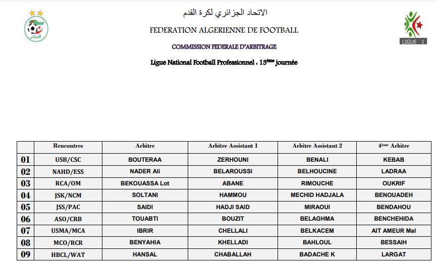 عينت لجنة التحكيم، الحكم إبرير، لإدارة قمة الجولة الـ13، والتي ستجمع مولودية الجزائر بالغريم التقليدي اتحاد العاصمة.