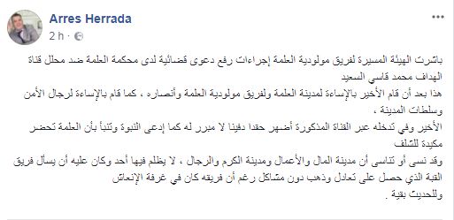 باشرت إدارة فريق مولودية العلمة إجراءات رفع دعوى قضائية ضد اللاعب الدولي السابق محمد قاسي السعيد المحلل الحالي بإحدى القنوات الرياضية الخاصة.