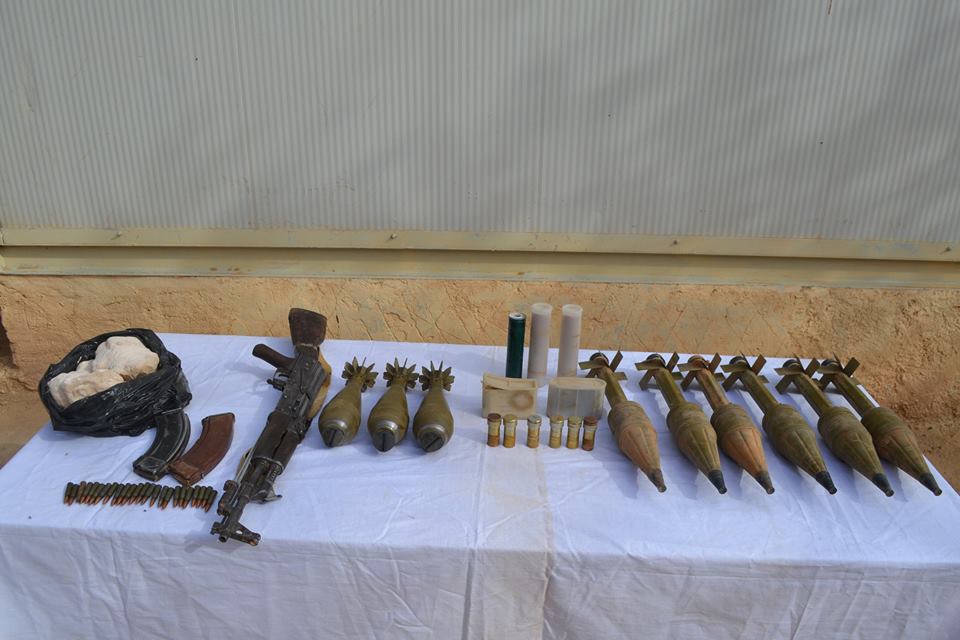 كما تم حجز مسدس رشاش من نوع كلاشنيكوف، 6 قذائف من نوع RPG7، ثلاثة قذائف هاون،2 كلغ من TNT.