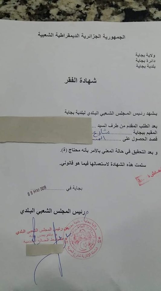 أجبرت بلدية بجاية المواطنين المعوزين على إستخراج شهادة الفقر من البلدية حتى يتبث أحقية المستفيد من قفة رمضان.