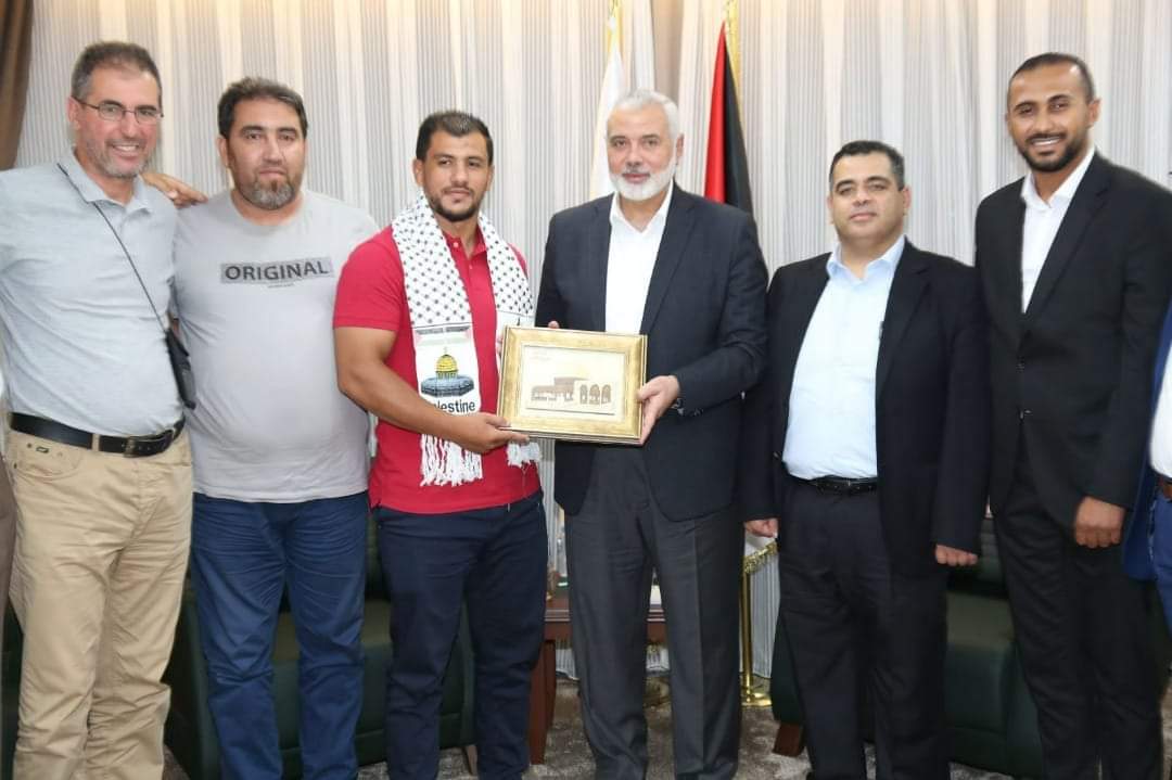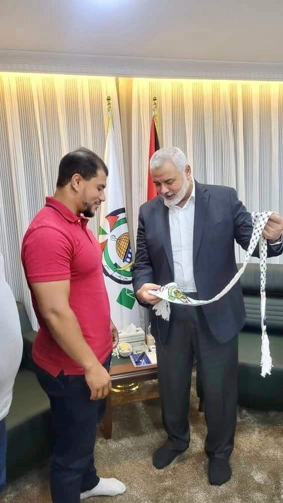 إسماعيل هنية يكرم البطل الجزائري فتحي نورين