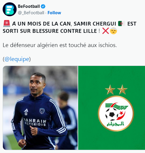 وقالت وسائل الإعلام الفرنسية أن سمير شرقي يحتاج إلى الراحة لعودته إلى المنافسة الرسمية، كما كشفت صحيفة “ليكيب” أن إصابة شرقي ستجبره على الابتعاد عن المنافسة لمدة لا تتجاوز أسبوعين، وهو ما يبدد المخاوف بشأن مشاركته في كأس أمم إفريقيا التي تنطلق يوم واحد وعشرين ديسمبر المقبل.