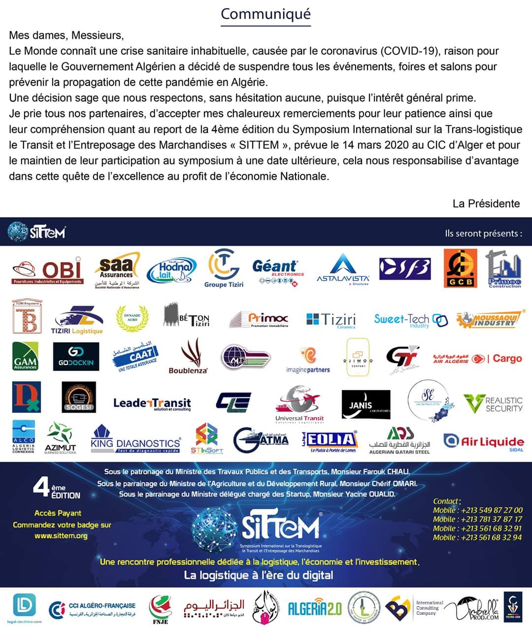 كما إعتبرت إدارة الملتقى الدولي للنقل واللوجبستيك أن هذا القرار حكيم والغرض منه المساهمة في مواجهة الفيروس الذي ضرب العالم.