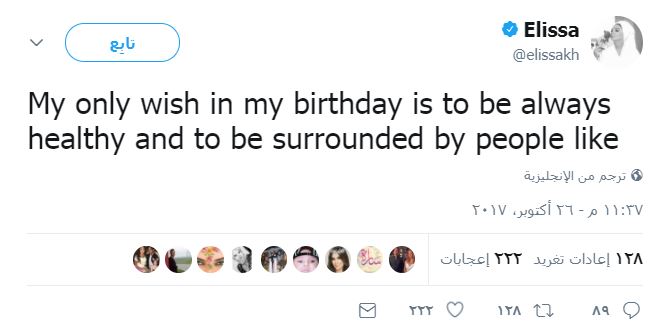 وغردت إليسا قائلة: “أمنيتي الوحيدة في عيد ميلادي، أنّ أكون بصحة جيدة ومحاطة بناس مثلكم”.