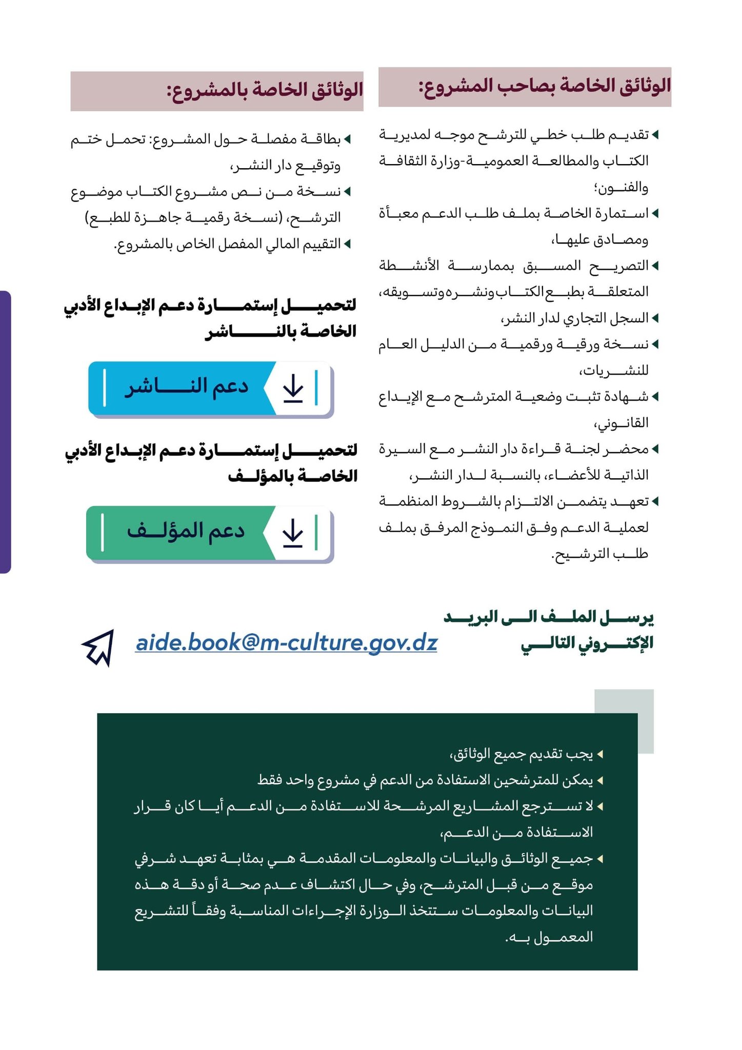 لتحميل استمارة دعم الإبداع الأدبي الخاصة بالمؤلف: