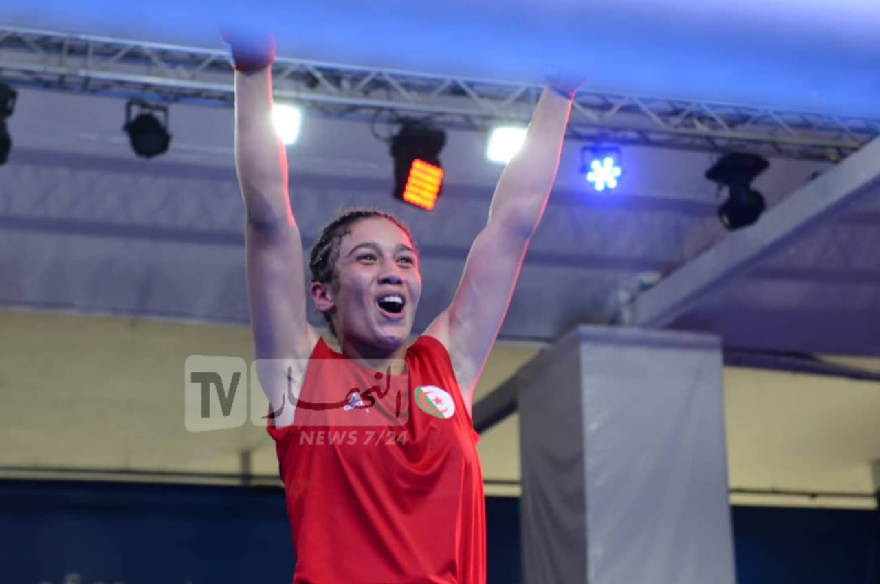 وذلك عقب فوزها في النهائي أمام المُلاكمة المغربية، شيماء رهادي، بثلاث جولات دون رد في وزن 60 كلغ.