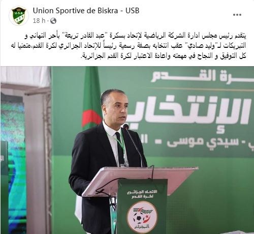 سارعت مختلف الأندية الجزائرية، إلى تهنئة وليد صادي، على انتخابه رئيسا جديدا للاتحادية الجزائرية لكرة القدم “فاف”.