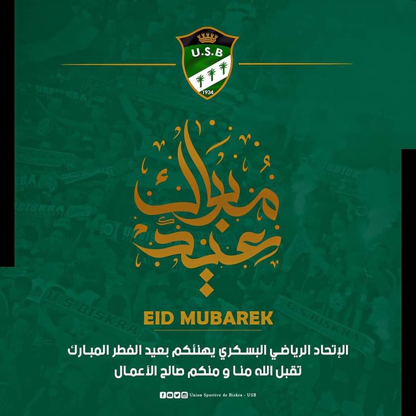 كما قامت إدارة اتحاد بسكرة بتهنئة الجزائرية بحلول بعيد الفطر، وقالت “عيدكم مبارك وكل عام وأنتم بألف خير تقبل الله منا و منكم صالح الأعمال والطاعات وجعلكم من الأبرار الصالحين إن شاء الله”.