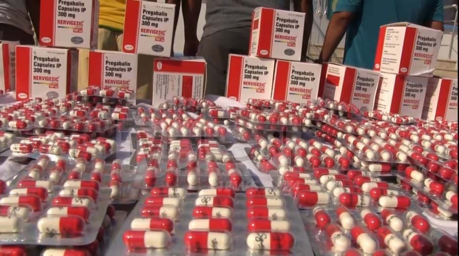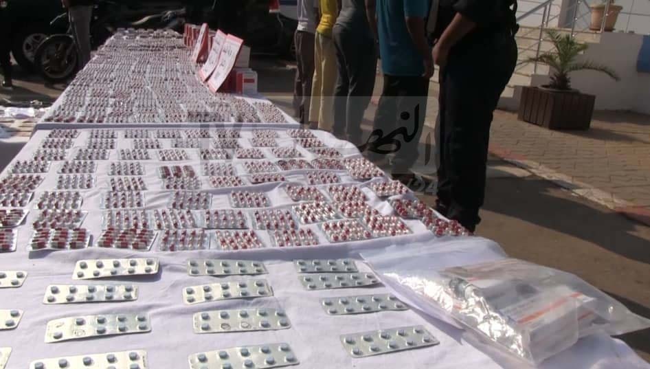 حيث تمكنت من توقيف 4 أشخاص تتراوح أعمارهم ما بين 22 و35 سنة وحجز ما يفوق 13 ألف قرص من نوع بريڨابالين وفاليوم.ومبلغ  15 الف دينار ، وأسلحة بيضاء محظورة، ومحرك قارب من نوع “yamaha” بقوة 60 حصان ومركبة تستخدم في النقل والشحن والتخزين.